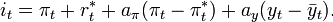Theo Taylor (1993), ông đã tìm ra một cách tính lãi suất danh nghĩa phù hợp về mối quan hệ giữa tăng trưởng và lạm phát – hay còn được gọi là quy tắc Taylor.. T