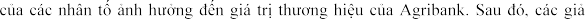 Giá trị thương hiệu | - Tôi cho rằng rất nhiều người yêu thích thương hiệu Agribank - Tôi cho rằng Agribank là thương hiệu uy tín - Tôi cho rằng Agribank là thương hiệu nổi tiếng - Tôi cho rằng Agribank là thương hiệu mạnh | - Tôi cho rằng Agribank là thương hiệu được nhiều người yêu thích - Tôi cho rằng Agribank là thương hiệu uy tín - Tôi cho rằng Agribank là thương hiệu nổi tiếng - Tôi cho rằng Agribank là thương hiệu mạnh |