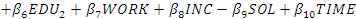 B7 | + | Công việc văn phòng hoặc các công việc đòi hỏi chất xám cao thì khả năng trả nợ cao hơn do thu nhập của họ ổn định hơn nên biến WORK có mối tương quan thuận với biến phụ thuộc. |