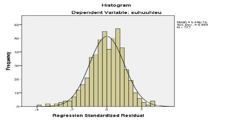 Mô hình cũng đáp ứng điều kiện về phần dư, phần dư có phân phối xấp xỉ chuẩn (trung bình Mean = 5.54E-15, độ lệch chuẩn Std.Dev = ,993).