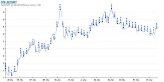 Thực vậy, đồ thị 5.2 cho ta thấy đường biểu diễn giá của cổ phiếu DPM tăng dần kể từ tháng 1/2012 (xem đồ thị 5.2).