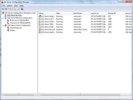 Bước 1: Mở SQL Server Configuration Manager/SQL Server Services/Thiết lập để tất cả các dịch vụ ở trạng thái Running.