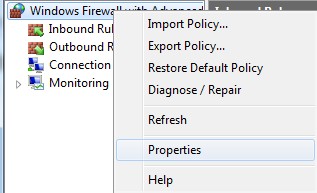 Bước 2: Chọn chuột phải Windows Firewall with Advanced Security on Local Computer/Chọn Properties.