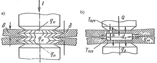 Sơ đồ quá trình nhiệt khi hàn điểm biểu thị trên hình 1.15a và b.