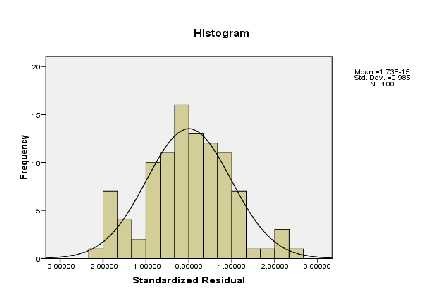 Với Mean = 1,73E-15 gần bằng 0, độ lệch chuẩn Std. Dev = 0,985, và đồ thị có dạng hình chuông nên có thể kết luận rằng giả thiết phân phối chuẩn không bị vi phạm.