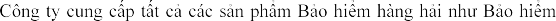- Công ty nhận Bảo hiểm mọi rủi ro về tổn thất hay hư hại cho tất cả các loại tàu đang hoạt động quóc tế và trong nước. Bảo hiểm thiệt hại đối với hàng hoá xuất nhập khẩu và vận chuyển nội địa.