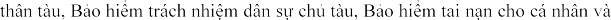 - Bảo hiểm trách nhiệm dân sự chủ tàu (P & I): Bảo hiểm theo quy tắc của hội P & I và quy tắc Bảo hiểm tàu hoạt động trong lãnh thổ Việt Nam.