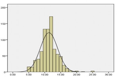 bình thấp với giá trị trung bình chỉ đạt 9,79 điểm, độ phân tán của mẫu không lớn