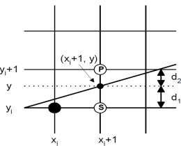 phương trình của đoạn thẳng y = mx +b. Nghĩa là, ta sẽ tính tọa độ của điểm xi1, y