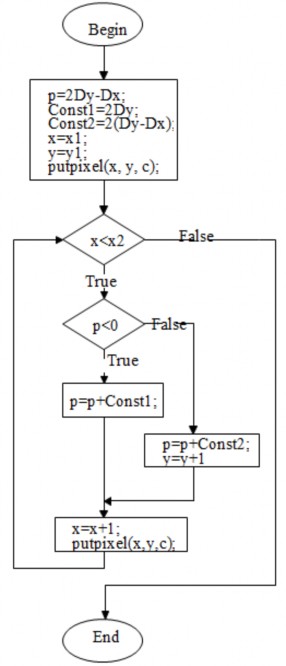 Để đơn giản hóa quá trình xây dựng giải thuật, ta xét các đường thẳng có hệ số góc dương và nhỏ hơn 1 để đảm bảo bộ biến thiên theo trục x lớn hơn độ biến thiên theo trục y. Khi đó cho x biến thiên mỗi lần một pixel và độ biến thiên của y được tính theo x.