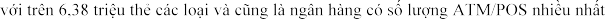 thanh toán thẻ của 18 ngân hàng thành viên Banknetvn, Smartlink; Thẻ quốc tế Visa, MasterCard, JCB; là ngân hàng duy nhất chấp nhận thanh toán thẻ CUP qua Banknetvn tại 100% ATM. Còn tiền gửi từ TCTD năm 2012 giảm nhẹ so với 2011 từ 107 tỷ còn 103 tỷ tương đương với 3,74%. Tuy nhiên lại tăng mạnh trong năm 2013 đạt 135 tỷ tăng 31,07%. Chủ yếu nguồn huy động này đến từ các TCTD như Kho bạc nhà nước hay nguồn vốn ủy thác đầu tư của chính phủ, với số lượng không nhiều và thời hạn không lâu.