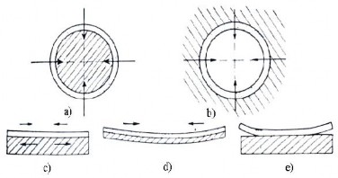 Khi phun những bề mặt ngoài hình trụ, ví dụ như các trục, lực sinh ra do sự co rút của lớp phủ là các nội lực nên rất yếu do vậy ảnh hưởng của chúng không đáng kể (xem hình 1.31a).