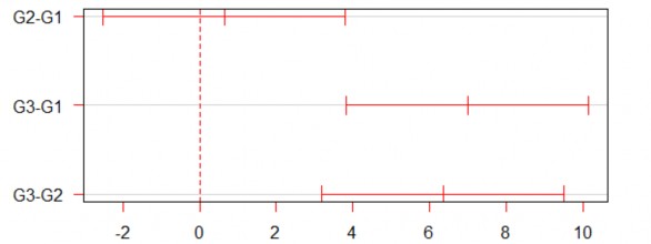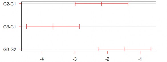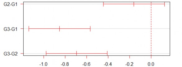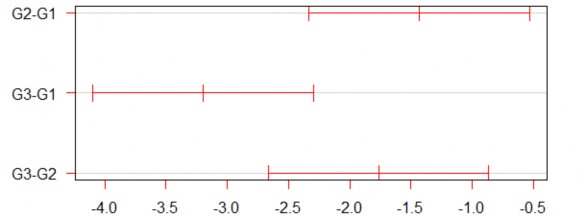Thông qua phương pháp phân tích hậu định là Tukey’s Honest Significant Difference để tìm những khác biệt thực sự. Kết quả thu được thấy, chỉ số khác biệt thành tích Tại chỗ ném 3 điểm, 10x3 (quả vào) giữa 3 cặp so sánh theo giai đoạn từ 1.222 đến 3.444 với khoảng tin cậy 95% ở mức thấp nhất là 0.209 và cao nhất là 4.458, như vậy đều nhỏ hơn 0 với P<0.05 và