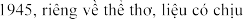ền thống của thơ phương Tây nhưng lạ ới mẻ, tân kỳ đối với người Việt lúc bấy giờ. Việc Thơ mới 1932 - 1945 học tập các kỹ thuật thơ phương Tây được xem là một cách hiện đại hóa thơ ca. Vì vậy, các thể thơ truyền ![]()