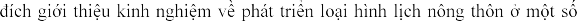 Ở Việt Nam loại hình du lịch này còn khá mới với hoạt động du lịch đồng quê ban đầu khởi sắc. Các doanh nghiệp du lịch tổ chức những chương trình du lịch đưa du khách tới các vùng đồng quê để thăm các di tích lịch sử và các công trình kiến trúc nghệ thuật, tham gia hoạt động của các lễ hội làng: tìm hiểu phong tục tập quán văn hoá của các vùng đồng quê: thăm quan quang cảnh làng quê với cây đa, giếng nước, sân đình, các làng nghề truyền thống, tham gia vào các hoạt động sản xuất nông nghiệp như gặt, đập lúa, xay thóc, giã gạo, câu cá, cất vó, thưởng thức các món ăn truyền thống…