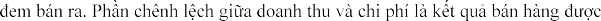 = | Doanh thu bán hàng thuần | - | Giá vốn hàng bán | - | Chi phí bán hàng, chi phí quản lý doanh nghiệp phân bổ cho số hàng bán |
