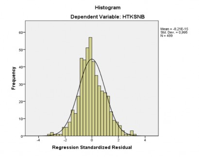 Giả định liên hệ tuyến tính và phương sai không đổi: Nếu giả định liên hệ tuyến tính và phương sai bằng nhau được thoả mãn thì không nhận thấy có liên hệ gì giữa các giá trị dự đoán và phần dư, chúng sẽ phát tán rất ngẫu nhiên. Nếu giả định tuyến tính được thoả mãn thì phần dư phải phát tán ngẫu nhiên trong một vùng xung quanh đường đi qua tung độ 0 đồ thị phân tán của phần dư chuẩn hoá (Standardized Residual) và giá trị dự đoán chuẩn hoá (Standardized Predicted