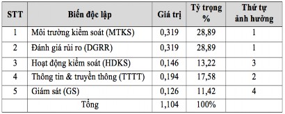 Tác giả ký hiệu như sau: (1) MTKS: Môi trường kiểm soát; (2) DGRR: Đánh giá rủi ro. (3) HDKS: Hoạt động kiểm soát. (4) TTTT: Thông tin & truyền thông.