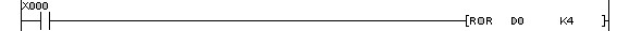 Chuỗi bit của toán hạng đích D được quay sang trái n bit khi lệnh này được thự hiện. Bit cuối cùng được sao chépvào cờ nhớ M8022(carry flag). Trong ví dụ bên dưới minh họa nội dung của D0 biểu diễn chuỗi bit.