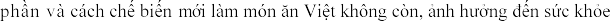 - Từ những món ăn truyền thống với những kinh nghiệm mà người Việt có được họ có thể sáng tạo ra những kiểu mới nhưng có thể giữ được mùi vị vốn có của nó.