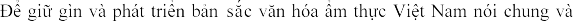 - Tiếp tục và phát huy nét truyền thống ẩm thực của dân tộc ta.