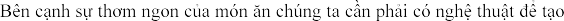 - Chúng ta nên biết cách chọn lọc cái hay cái đẹp nền ẩm thực của các nước trên thế giới nhưng không vì thế mà làm mất đi những mùi vị đặc trưng của người Việt.