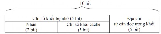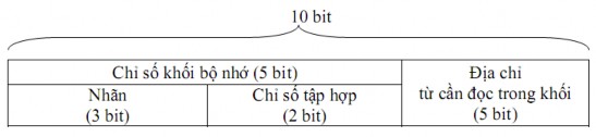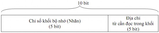 Địa chỉ xác định một từ trong bộ nhớ có 10 bit, tuỳ theo cách xếp đặt khối mà ta có thể phân tích địa chỉ này thành các thành phần như sau: