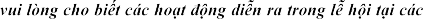 Hoạt động trong lễ hội | Số phiếu (N) | Tỷ lệ (%) | |