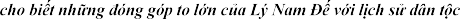 Câu 1: Xin ông (bà) cho biết Lý Nam Đế là ai?