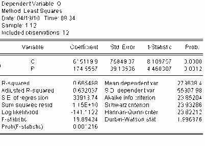 R2 = 0,665488 hàm hồi quy này giải thích được tới 66,5488% đến hàm cầu, còn lại các yếu tố khác ngoài giá ảnh hưởng tới cầu của người tiêu dùng.