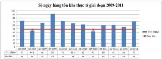 Biểu đồ 2.7: Chỉ tiêu số ngày hàng tồn kho thực tế từ năm 2009-2011