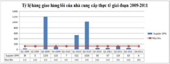 Biểu đồ 2.8: Tỷ lệ giao hàng lỗi của nhà cung cấp thực tế từ năm 2009-2011