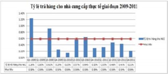 Biểu đồ 2.9: Tỷ lệ trả hàng cho nhà cung cấp thực tế từ năm 2009-2011