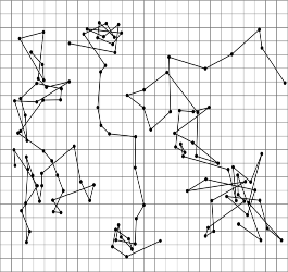 Hình 1.8 là ví dụ đơn giản nhất về 5 lần dịch chuyển ngẫu nhiên trong tập các số nguyên Z, trong đó độ lớn của mỗi bước theo 2 trục tọa độ là 1 hoặc 0.