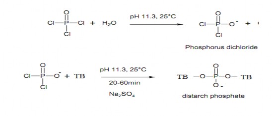 Tạo lưới c a tinh bột với oxyclophotpho là phản ứng diễn ra nhanh tạo ra distarch phophate. Phản ứng này đặc biệt hiệu quả trong môi trường kiềm với pH bằng 11 trong sự có mặt c a Na2SO4 [12, 64, 69].