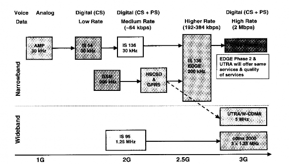 - Ngoài hệ thống PDC của Nhật với lo ngại không phát triển được thị trường ra ngoài nước nên không nâng cấp tiếp mà triển khai thẳng công nghệ 3G mới, các hệ thống khác đều có kế hoạch chuyển đổi tới 2,5G và 3G. Tổng quan về các phương án chuyển đổi được trình bày trong hình sau: