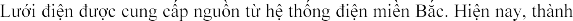 Hệ thống phụ tải thành phố được chia thành 2 vùng: Vùng 1 là toàn bộ khu vực Hòn Gai, được cấp điện từ trạm 110kV Giáp Khẩu và trạm 110kV Hà Tu; vùng 2 là toàn bộ khu vực Bãi Cháy được cấp điện từ các trạm 110kV Giếng Đáy, Hùng Thắng, khu công nghiệp Cái Lân, khu công nghiệp Việt Hưng. Các trạm biến áp 110kV này chủ yếu được cấp điện từ trạm 220kV Hoành Bồ. Ngoài ra trong thành phố còn có nhà máy điện diezel Cái Lân công suất 36MW đã hoàn thành và phát vào mạng quốc gia.