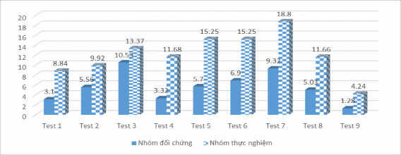 Để thấy rò hơn sự khác biệt về sự phát triển SMTĐ của VĐV, chúng tôi tiến hành so sánh nhịp tăng trưởng trình độ SMTĐ của VĐV nhóm đối chứng và thực nghiệm sau 1 năm thực nghiệm. Kết quả được trình bày tại bảng 3.26.