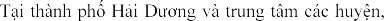 + Khu Vực Đô Thị: trước đây nguồn nước cho nhu cầu sản xuất và nhu cầu sinh hoạt thuộc khu vực thành phố Hải Dương chủ yếu là do nhà máy nước Bình Hàn và Tân Hải cung cấp. Nhưng đến nay đã sử dụng nguồn nước