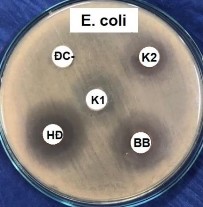 HĐ: Huyết đằng; BB: Bòng bong; K1: kháng sinh Aminkacin (đối chứng dương); K2: Kháng sinh Kanamicin (đối chứng dương); Dung môi: đối chứng âm