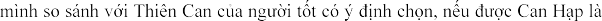Tuổi Bính hạp với Tân mà kỵ với Nhâm – Canh. Tuổi Đinh hạp với Nhâm mà kỵ với Quý – Tân. Tuổi Mậu hạp với Quý mà kỵ với Giám – Nhâm. Tuổi Kỷ hạp với Giáp mà kỵ với Ất – Quý.
