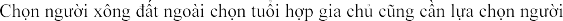 xưa chỉ có 2 cách chọn người tốt vía xông đất ngày đầu năm. Kẻ làm quan, người có học chọn người xông đất có tuổi hợp tuổi với chủ nhà và phải là đàn ông trụ cột trong gia đình. Đối với người dân lao động thì đơn giản hơn nhiều. Người được chọn xông đất phải khoẻ mạnh, tốt tính và gia cảnh khấm khá, hoà thuận. Chính vì nghĩ đến ảnh hưởng của việc xông đất liên quan đến mọi sự may mắn trong cuộc sống cho cả năm nên nhiều người rất thận trọng khi chọn người xông đất với mong muốn họ sẽ mang lại sự tốt lành trong suốt cả năm mới.” Dù tâm niệm mỗi nơi, mỗi gia đình, mỗi người đều khác nhau nhưng tục xông đất hầu như ở đâu cũng đang được coi trọng.