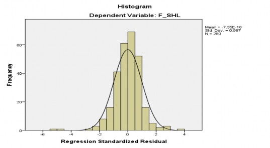 Từ biểu đồ phần dư chuẩn hóa có trị trung bình (Mean) = -7.35*10-16≃ 0 và độ lệch chuẩn = 0.987≃ 1: phân phối phần dư có dạng gần chuẩn, thỏa yêu cầu giả định về phân phối chuẩn của phần dư.