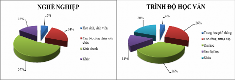 Xét v tr nh độ học vấn, số khách h ng có tr nh độ học vấn l đại học chiếm tỷ lệ cao nhất là 36% và 14% khách h ng có tr nh độ sau đại học. i u này cho thấy tr nh độ học vấn của khách h ng đến giao d ch với ngân hàng Agribank khá cao. Khách hàng có tr nh độ cao đẳng, trung cấp là 26%. Tỷ lệ khách h ng tr nh độ trung học phổ thông là 4% và cuối cùng nhóm khách hàng thuộc nhóm khác chiếm 20% tổng số khách h ng đã khảo sát.