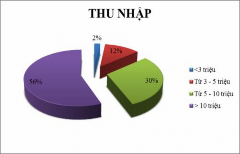 56% trong tổng số khách h ng được hỏi nằm trong nhóm đối tượng có thu nhâp trên 10 triệu. Chiếm tỷ lệ cao thứ 2 là nhóm khách hàng có thu nhập từ 5 đến 10 triệu, chiếm 30%.