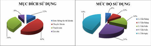 Qua kết quả đi u tra ta thấy rằng khách h ng thường xuyên sử ng I để chuyển khoản v thanh toán khi có đến 69 lượt người lựa chọn để chuyển khoản chiếm tỷ lệ 46% v 34% tức l 51 người lựa chọn để thanh toán đ y cũng l 2 h nh thức giao ch thường xuyên của khách h ng khi giao ch với Ng n h ng. Ngo i ra 2 tiêu ch l sử ng I để tra cứu số