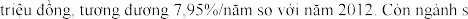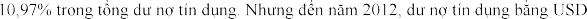 12.264 triệu đồng với tỷ trọng 10,19%. Năm 2012 tăng nhẹ ở mức 12.345 triệu đồng chiếm tỷ trọng 9,77%. Tương tự năm 2013 doanh số thu nợ bằng USD đạt