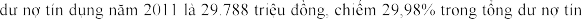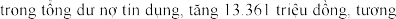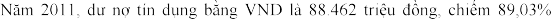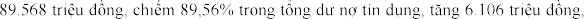 Dư nợ tín dụng DNV&N | 99.361 | 100 | 105.592 | 100 | 130.275 | 100 | 6.231 | 6,27 | 24.683 | 23,37 |