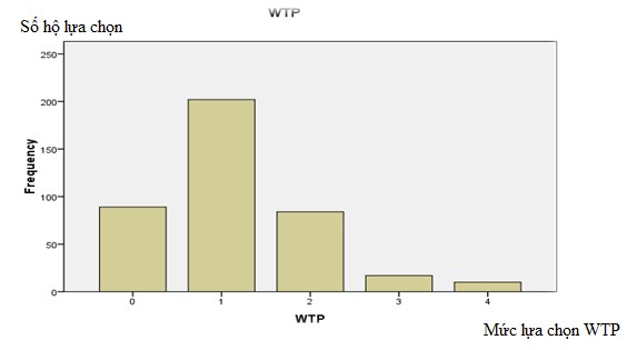 Khoảng mức giá WTP mà 402 hộ nông dân lựa chọn nhiều nhất là mức 1 (dưới 5000 đồng) với 50,2% lựa chọn. Có 89 hộ nông dân không đồng ý trả thêm tiền, có 202 hộ sẵn sàng trả thêm với mức <5000 đồng/sào/vụ, có 84 hộ sẵn sàng trả thêm mức từ 5.000 đến <10.000 đồng/sào/vụ, chiếm tỉ lệ % tương ứng là (22,1%; 50,2%; 20,9%).