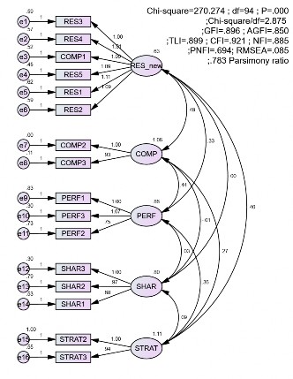 RES_new | <--> | PERF | .326 | .064 | 5.072 | *** | |